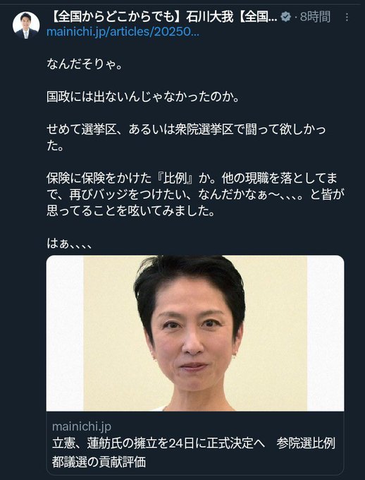 現在は削除されていますが、立民の参院の本心だと思います。特に比例代表で出馬する議員は同じことを持っているのではないでしょうか。