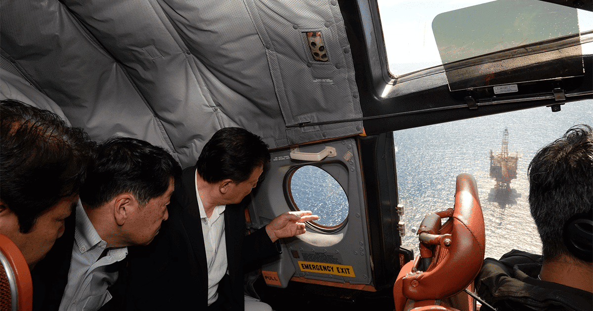 そして今度は中国に対して動きを見せたのです。小野寺政調会長は上空から中国が開発を進めている東シナ海のガス田を視察したのです。