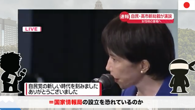 動画では『国家情報局設置!? 高市政権誕生で中国政府が焦る理由』としていますが、読売新聞が10月24日『政府は、国内外のインテリジェンス(情報収集、分析)活動の司令塔となる「国家情報局」を創設する方向で調整に入った。高市首相が、木原官房長官に検討を指示した』と報じています。