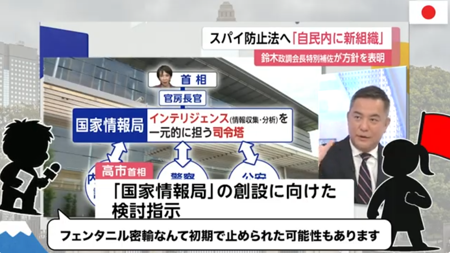 しかし、一度は廃案にされた「スパイ防止法」を高市政権が成立させようとしています。同時に、日本版CIAと言われる「国家情報局」設置も目指しています。