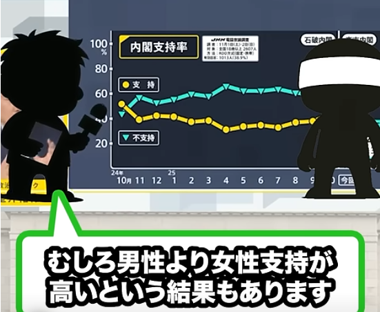 内閣支持率も『高市内閣の支持率がJNNが11月1日、2日に行った調査によると82.0%』で、『▼男性の支持率は81% 不支持17%▼女性の支持率は83% 不支持12%』と、女性の方が若干高く、年代別でも『▼18歳から29歳の支持率は88% 不支持7%▼30歳代の支持率は87% 不支持12%▼40歳代の支持率は86% 不支持12%▼50歳代の支持率は85% 不支持13%▼60歳以上の支持率は76% 不支持19%』と、若年層になるにつれ支持が高くなっています。